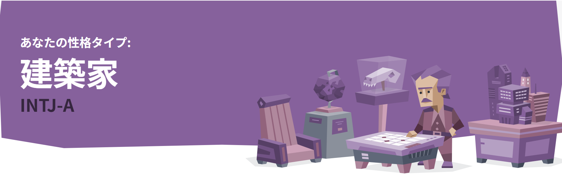 結果は「建築家(INTJ-A)」。 全人口のわずか数%しかいない、非常にレアなタイプだそうです。