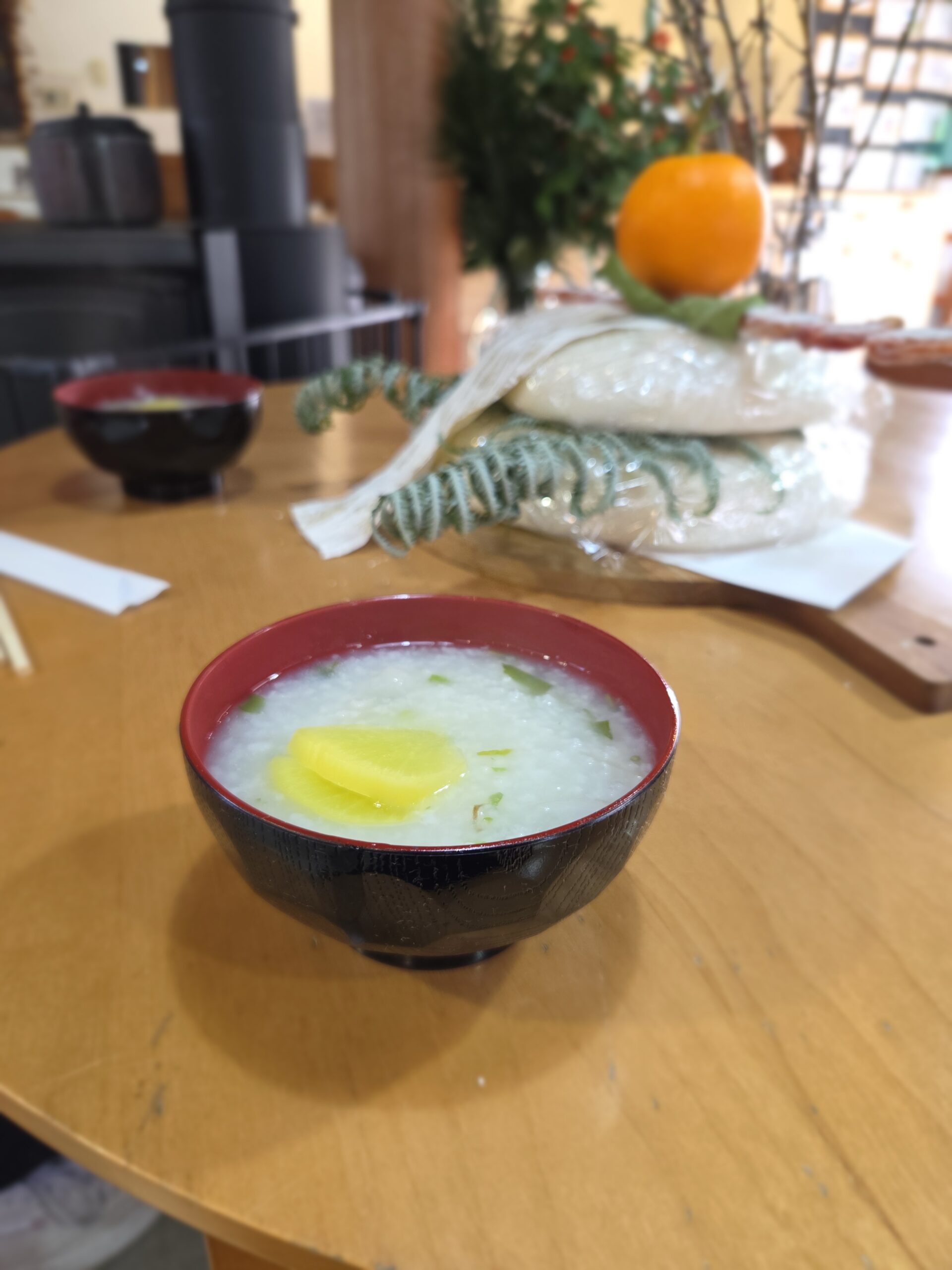 道の駅では、地域の方が振る舞ってくださる「七草粥」の無料配布が行われており、僕もありがたく一杯いただいてきました!